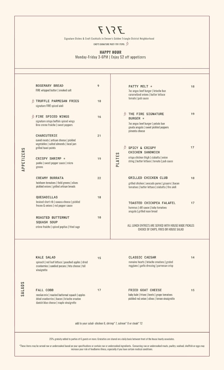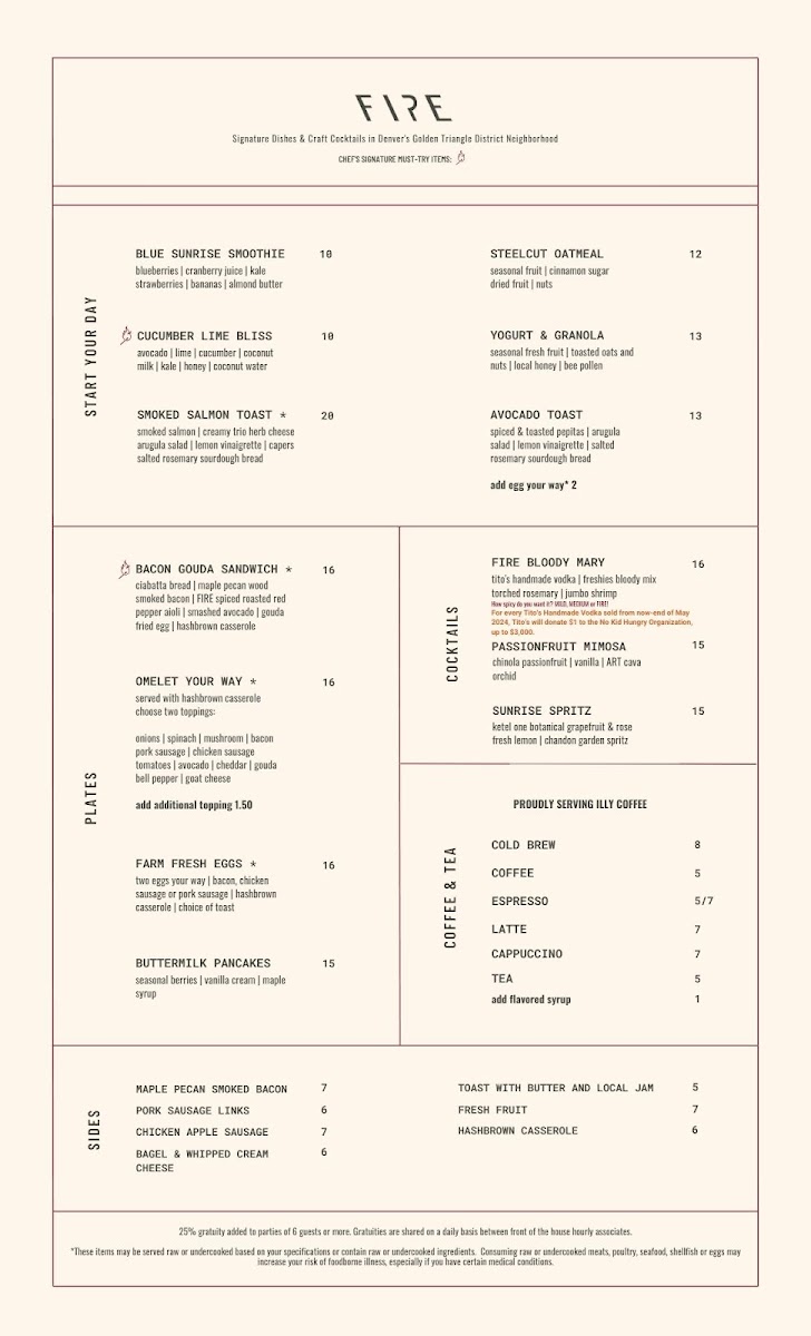 Guests rave about the exceptional service, particularly praising staff members who foster a welcoming environment. The rooftop patio boasts stunning city views, perfect for a picturesque dining experience. While the menu may be limited at lunchtime, the overall quality and creativity of the dishes, such as salmon served with Brussels sprouts and delightful cocktails, promise an unforgettable dining adventure. Fire Restaurant & Lounge undoubtedly stands out in Denver's vibrant food scene.